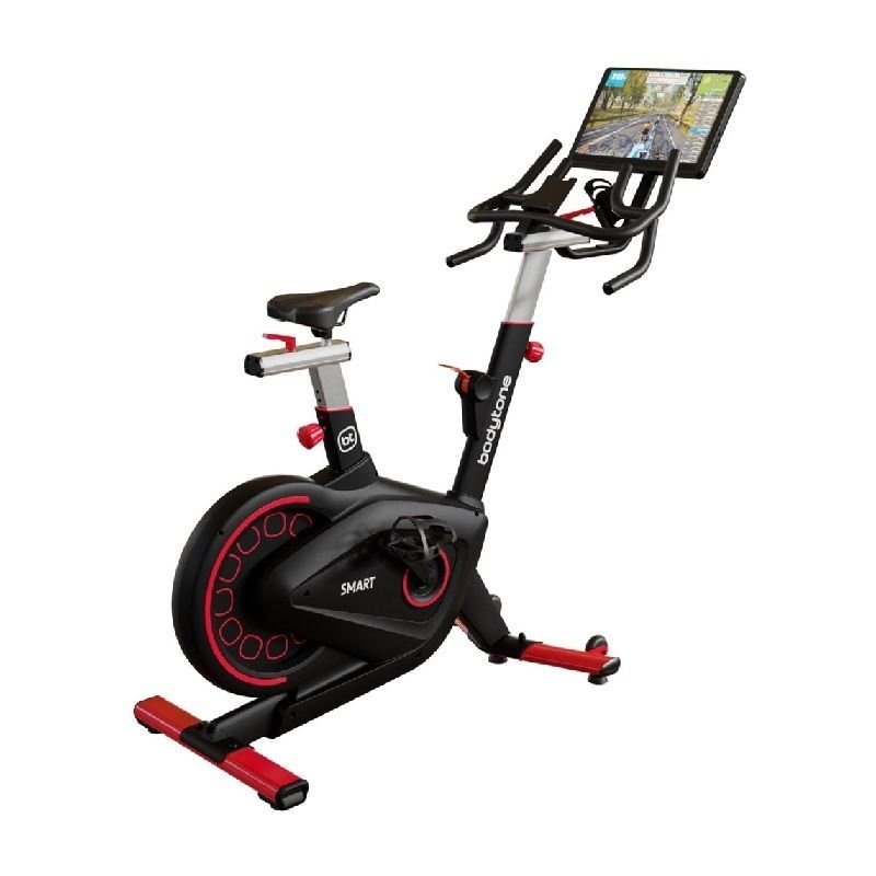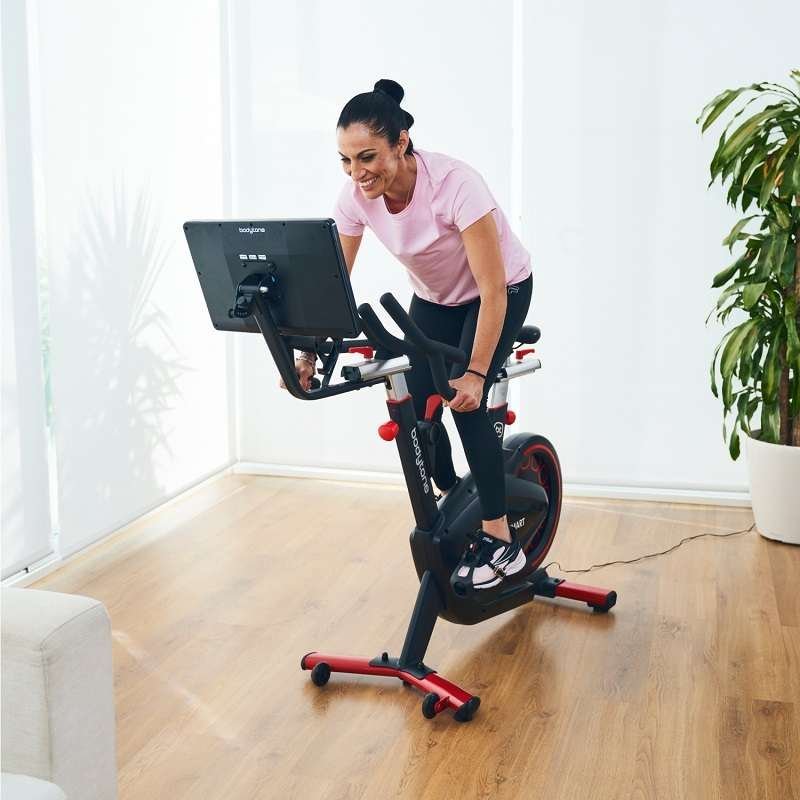- Ce vélo d’intérieur s’inspire du cyclisme de compétition et dispose d’une connectivité à différentes applications telles que Bkool, Kinomap, Onelap, Zwift ou MyBodytone grâce à la technologie Smart qui permet l’interaction.