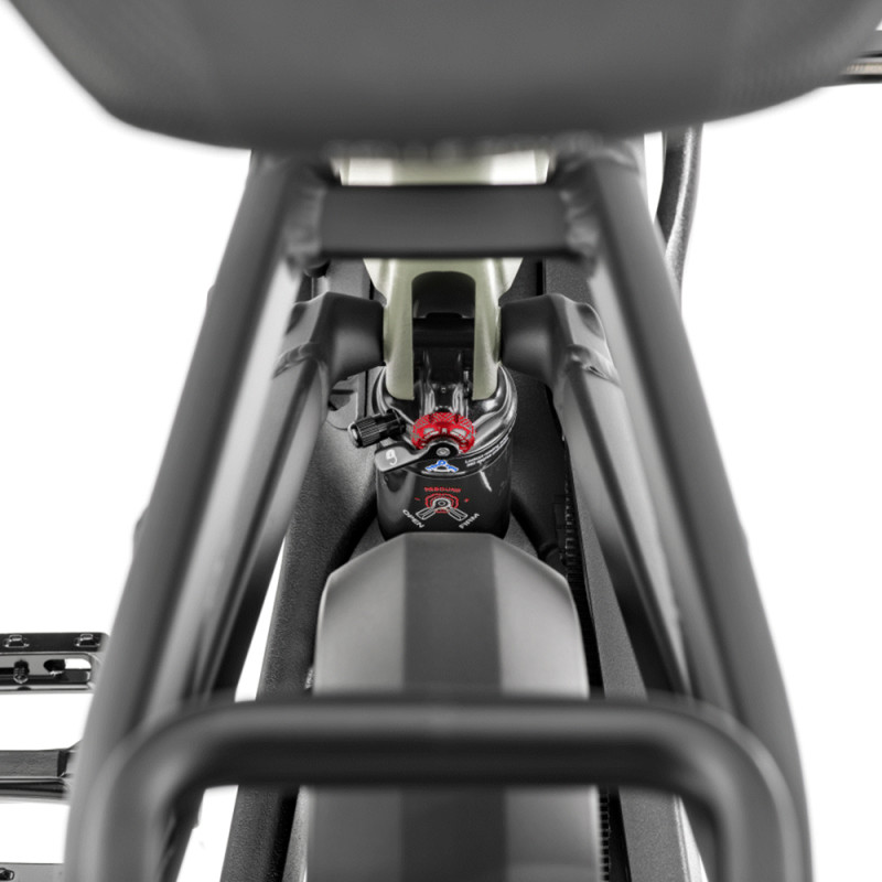 Ce dispositif absorbe parfaitement les chocs : nid-de-poule, bordures, chemins de randonnée, etc. Il s’adapte aussi bien à la ville qu’aux chemins caillouteux, et même aux terrains légèrement montagneux.
