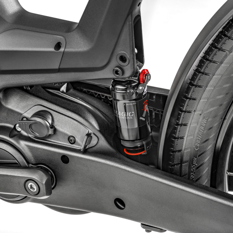 Amortisseur Moustache Magic Grip Control (115 mm) à deux positions, pour une conduite ultra confortable même sur chemins dégradés.